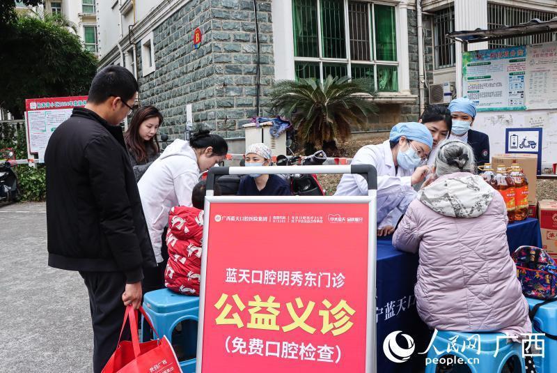 人民网南宁2月11日电 (何宁)2月10日,广西蓝天口腔医院走进自治区审计厅、南宁市柏涛湾小区开展“益口牙 蓝天行”新春慰问活动,通过开展口腔义诊活动、发放新春慰问礼品等形式,将暖心服务、健康知识送到群众心坎上,进一步促进全民口腔健康观念。