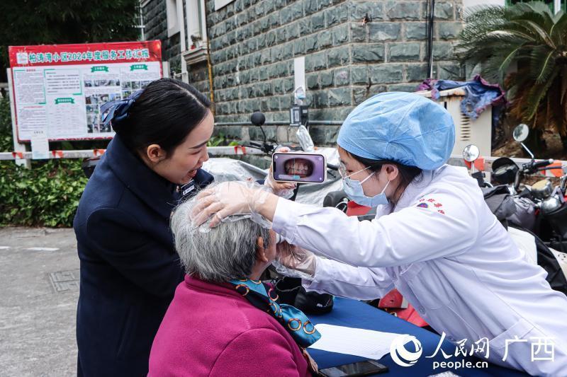 医生为居民检查口腔。人民网 何宁摄
